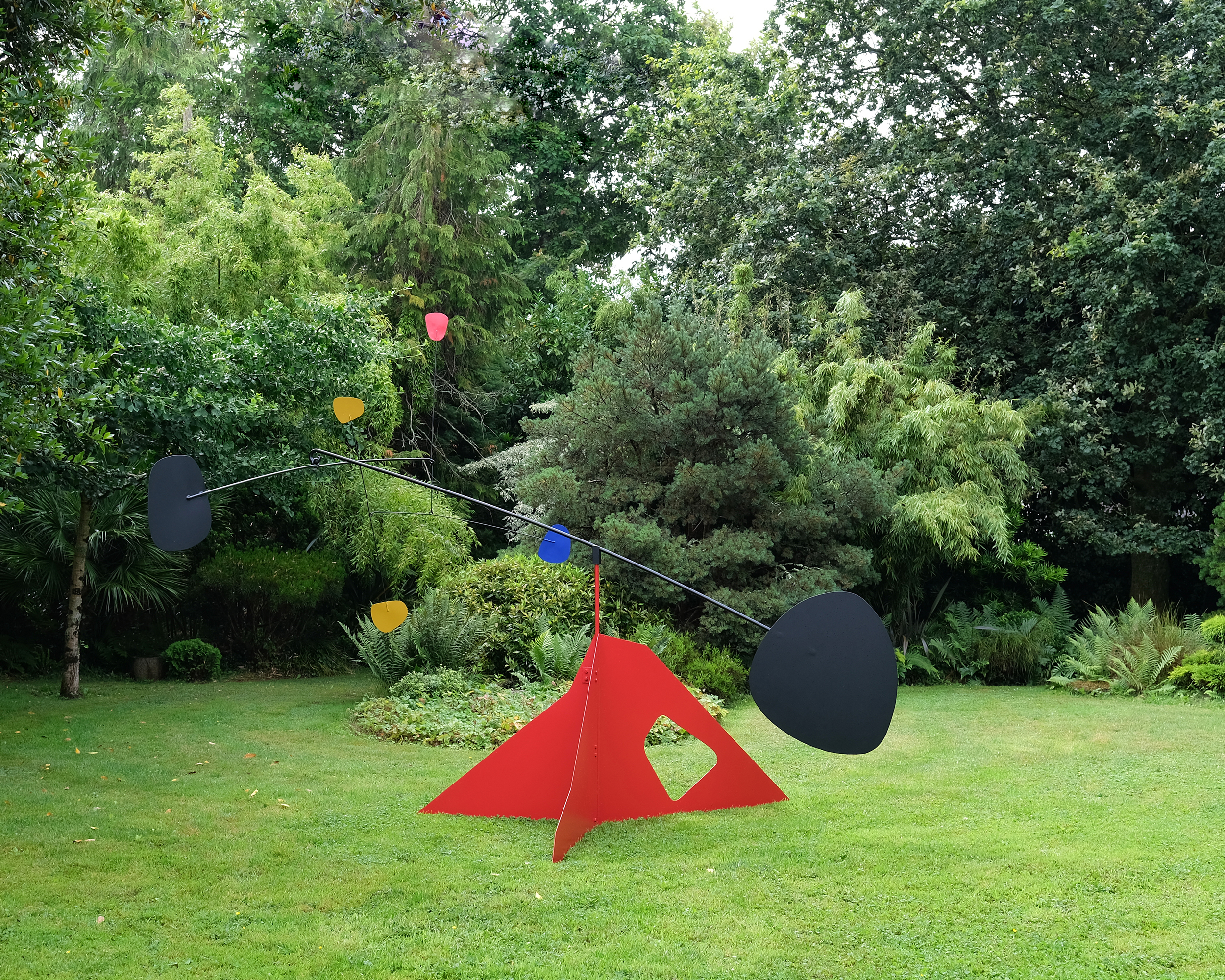 Stabile mobile extérieur estampillé PX650 Hauteur 3m Déploiement 3m x 3m hauteur du pied 1m sculpture en Inox laqué noir/rouge/ bleu/ocre mat pièce unique 2023